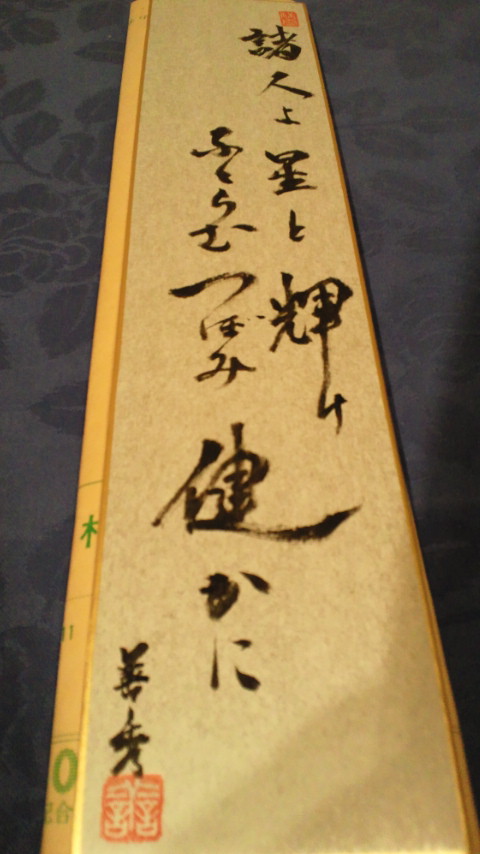 お疲れさまでした! 2012年4月8日 最終更新日時 : 2012年4月8日 hiroshee 三年間、市立鹿島台小学校の校長として学校経営をおこなっていた諸星 隆先生の退任祝いが開催され出席した。 主催の現PTA本部から招待を受けたPTA会長OB会である“鹿盛会”のメンバーも大勢参加し、大盛り上がりの祝宴となった。 子どもたちに携わる次の職場でも、元気に頑張っていただきたいと願う。 記念として、第3代PTA会長を務めた村田善秀さんが一句贈呈! 諸人よ星と輝け・・・ 立派な句である。