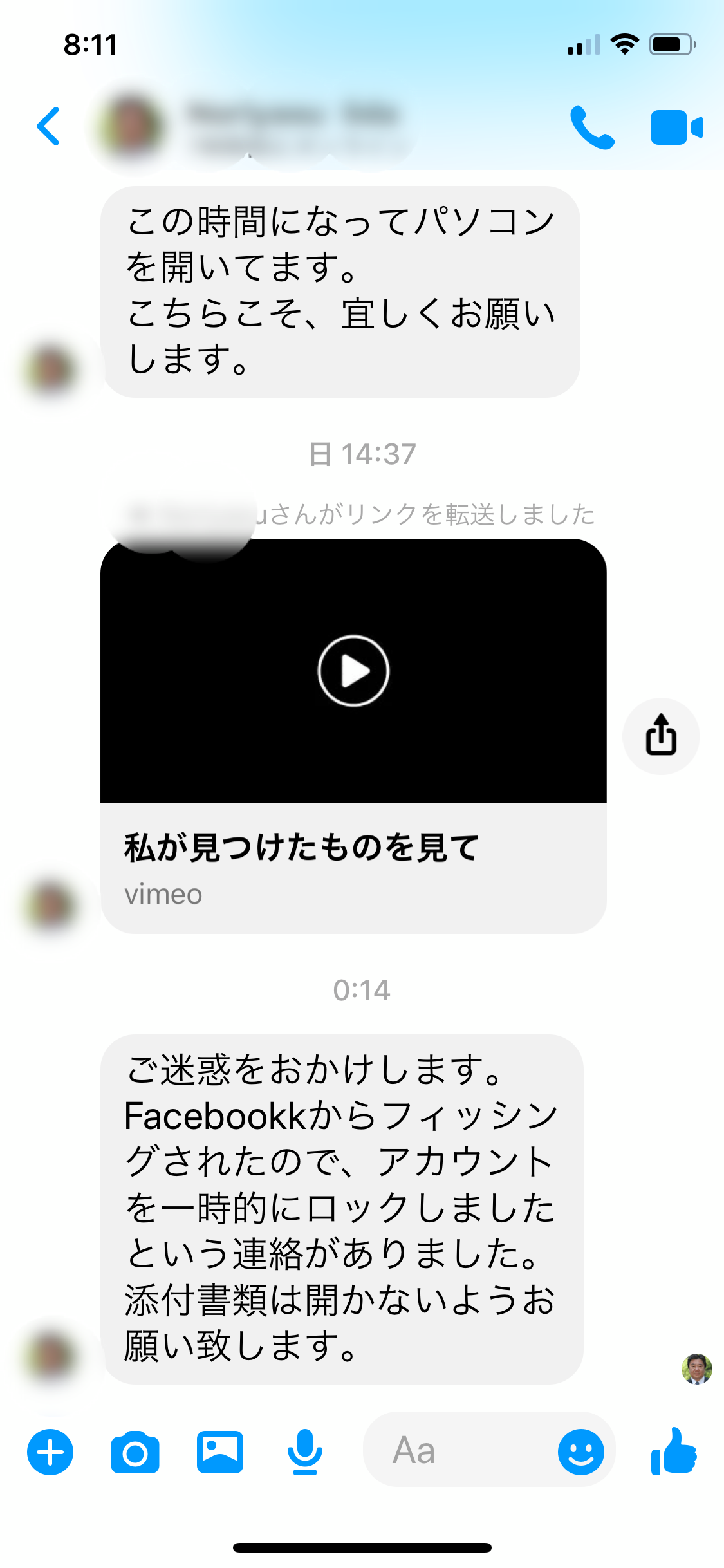 日をまたいだ午前0時14分にFasebookkから云々との連絡が入った。