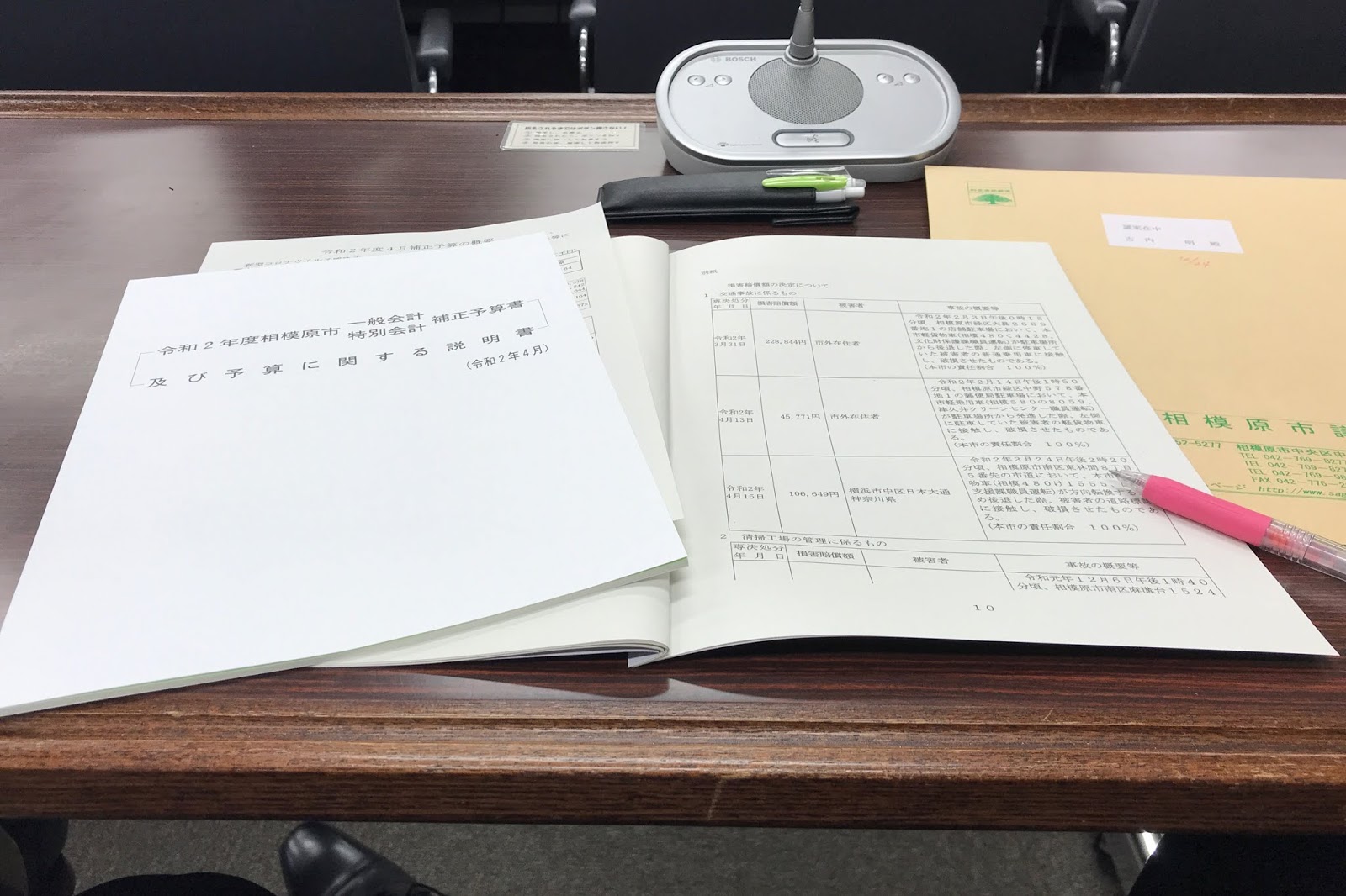 ここにも影響が… 2020年4月22日 最終更新日時 : 2020年4月22日 hiroshee 24日の本会議(新型コロナウイルスに関する補正予算審議)開催前の議案説明と付託される委員会の勉強会がおこなわれた。補正額については、本会議前なので公表できないが、内容的にはほとんどが対策や対応にかかる費用になる。議場で各委員会に付託され、その日のうちに採決する方向である。