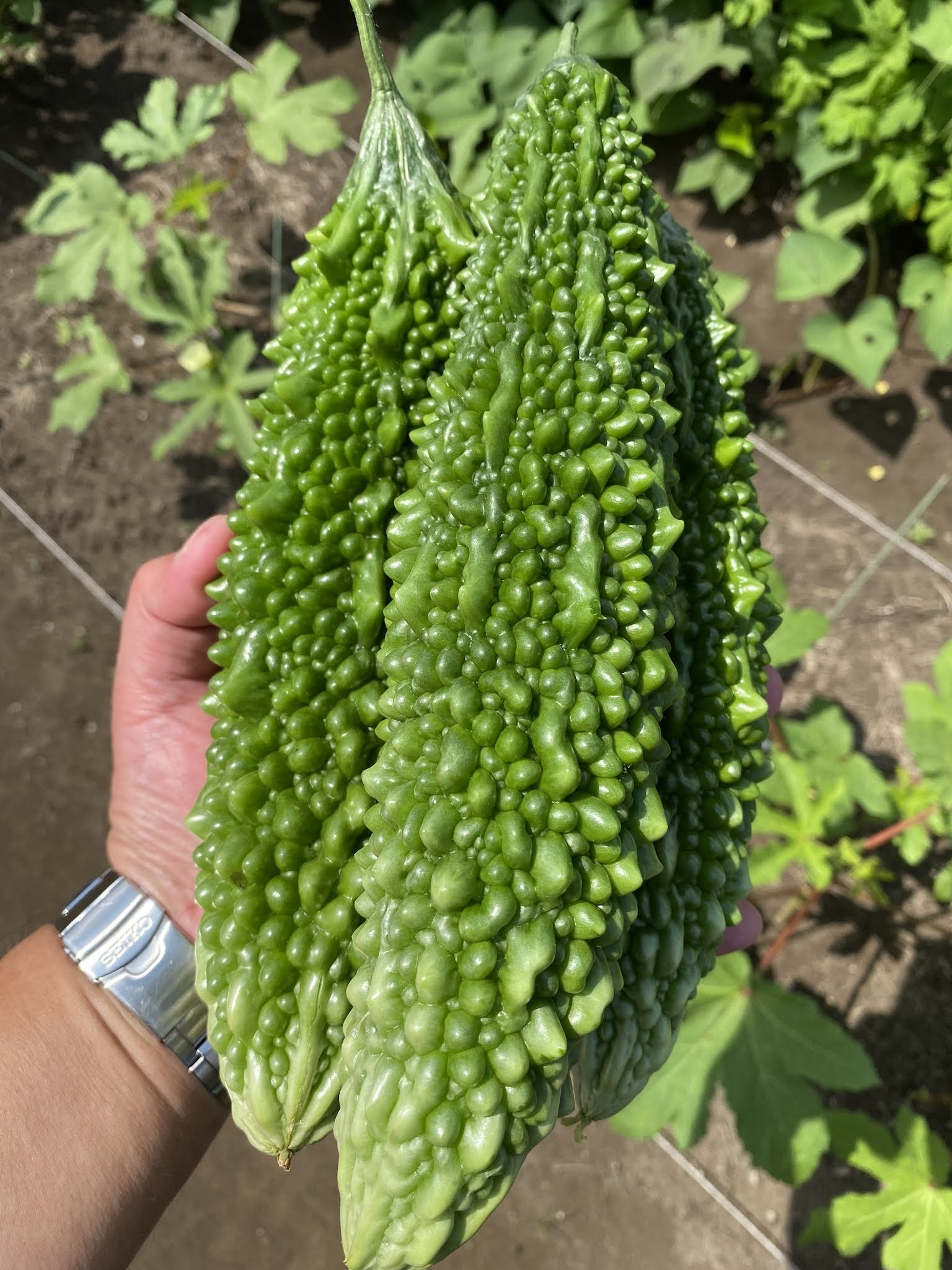 でかい! 2021年7月23日 最終更新日時 : 2021年7月23日 hiroshee 凄く立派なゴーヤを畑仲間の方から頂戴した。 このゴーヤに関しては、好き嫌いがハッキリと二分されるに違いないと思う。 自分は、好きなほうに入る。 初めて登場したときの事は覚えていないが、いつの間にか市民権を得て夏野菜の仲間入りをしていると感じる。 「ゴーヤチャンプル」という沖縄料理も、いつの間にかそこらへんで食べられるようになったし、家庭においてもふつうに調理される現在である。 手間がかからない野菜のひとつだ。