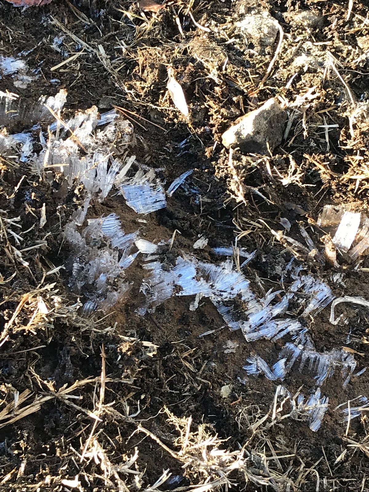 朝夕はしっかり冷え込み、霜柱が立っているところもある。