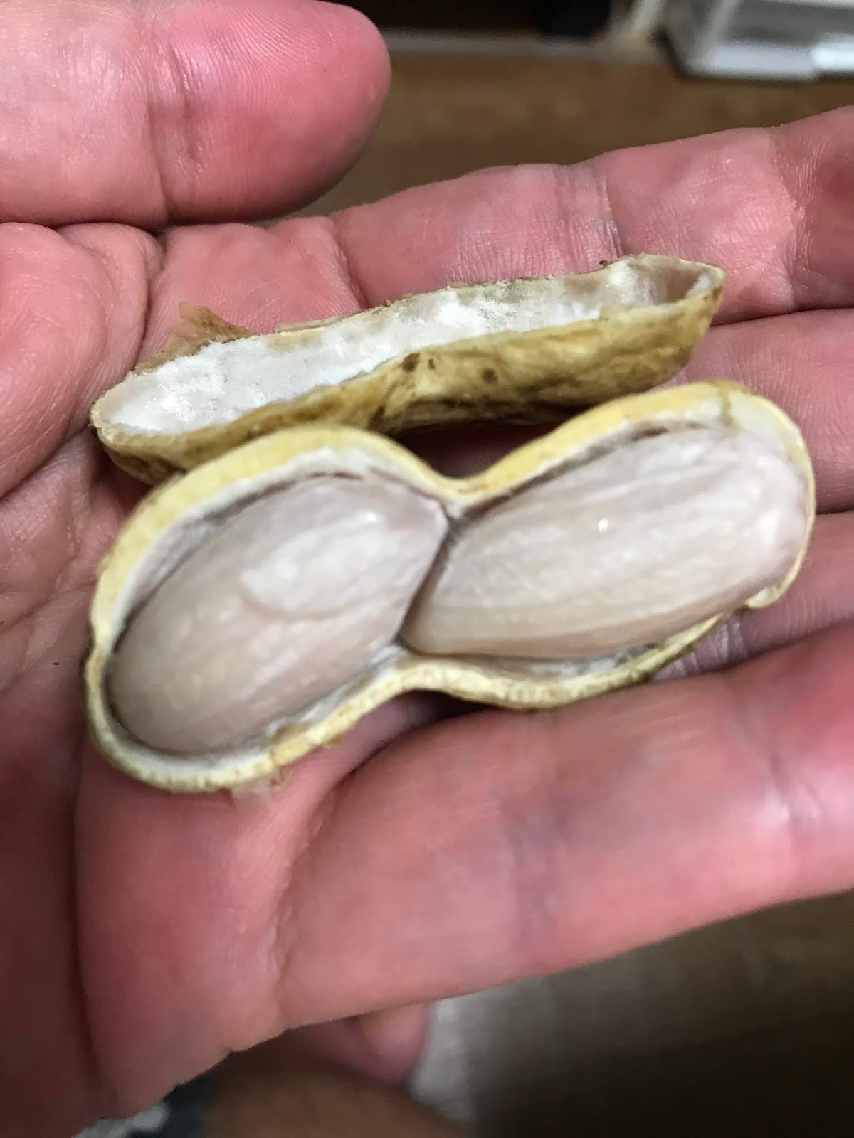 中身もデカイ! 2018年9月20日 最終更新日時 : 2018年9月20日 hiroshee 昨日書き込んだ落花生!茹でた後、大粒のものを割ってビックリ!すごく大粒で、しかも旨い!昨年は、何が悪かったのか?まるで育たなかった・・・昨年の分まで美味しくいただかせていただいた!