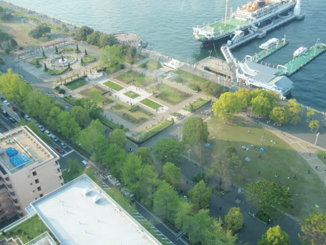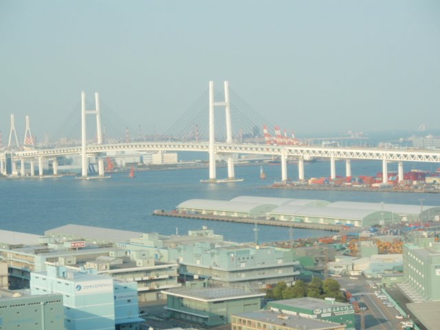 遙か彼方にベイブリッジが、初めてマリンタワーに登りましたが、展望台には「東京タワー」と同じように、下が覗けるスリガラスがはめ込んでありました。