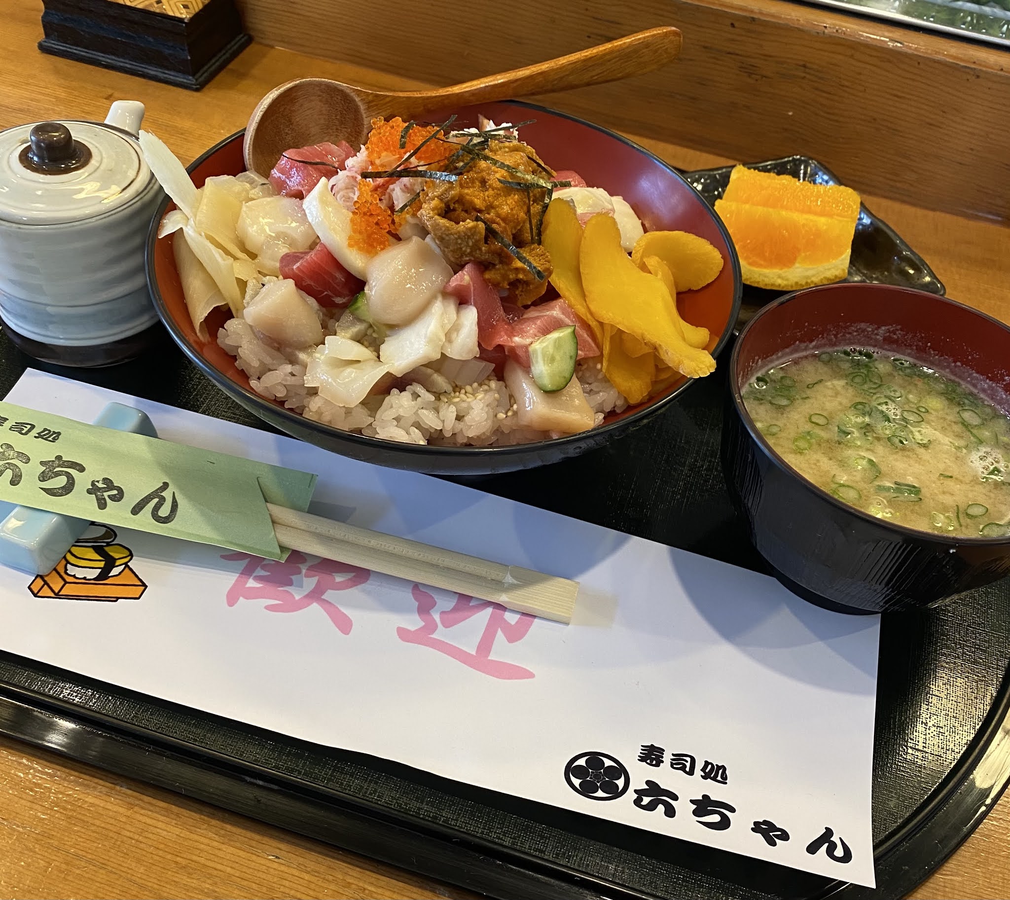 六ちゃん 2021年2月7日 最終更新日時 : 2021年2月7日 hiroshee 昨日、久しぶりに小田急相模原駅近の寿司屋「六ちゃん」で昼食。 このお店は、東海大相模野球部や柔道部等の選手や指導者などが通う粋な寿司屋である。 後援会役員さんから紹介され顔を出すようになってから約10年、多くの方々との出会いがあったお店である。 写真は名物である「おまかせ丼」1100円! ボリューム満点の一品である。 いつもながら、美味しくいただいてきた!