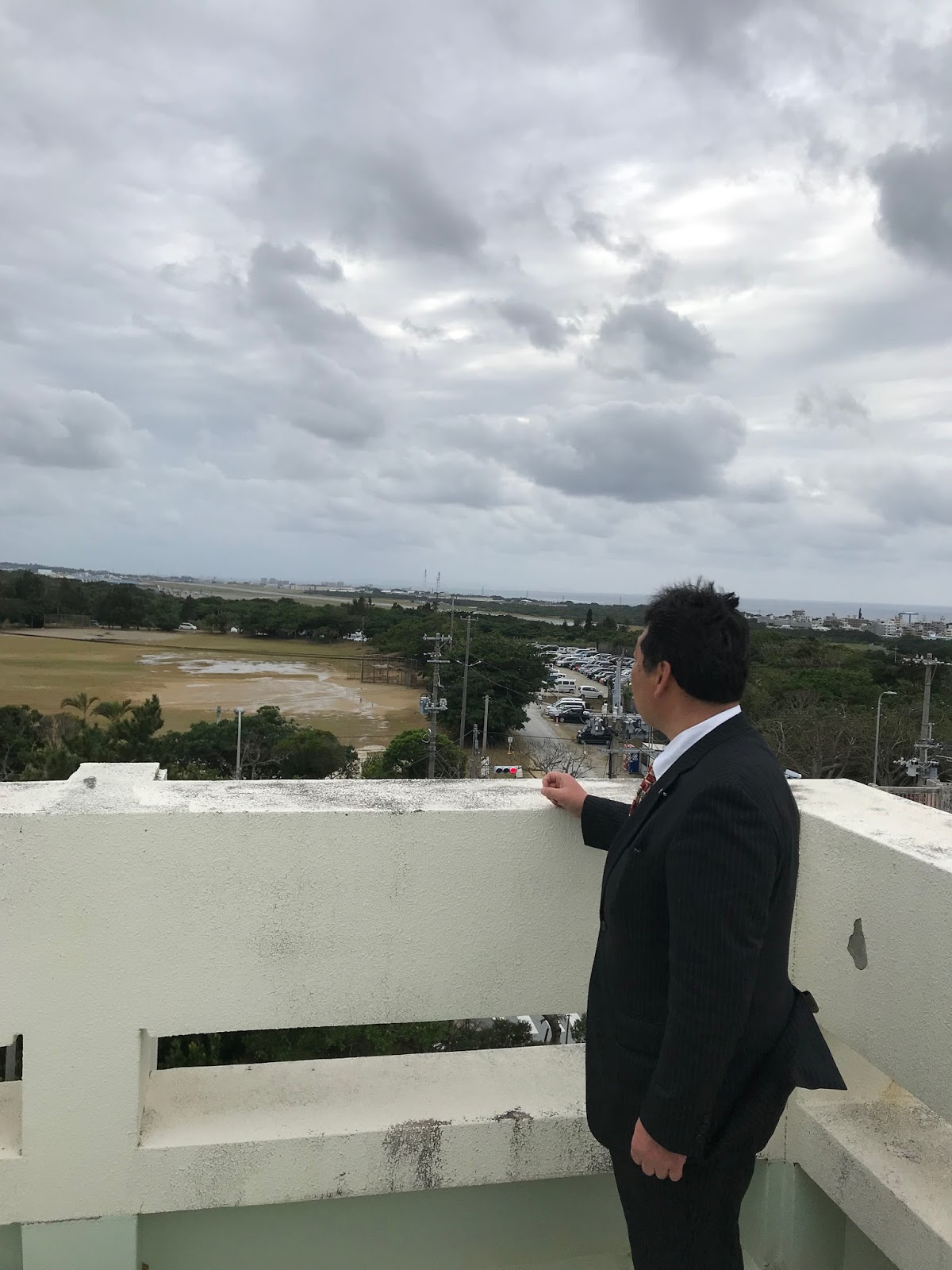 宜野湾市役所屋上から見渡せる普天間飛行場、この米軍基地にはオスプレイを始め、多くのヘリコプターが所属している。