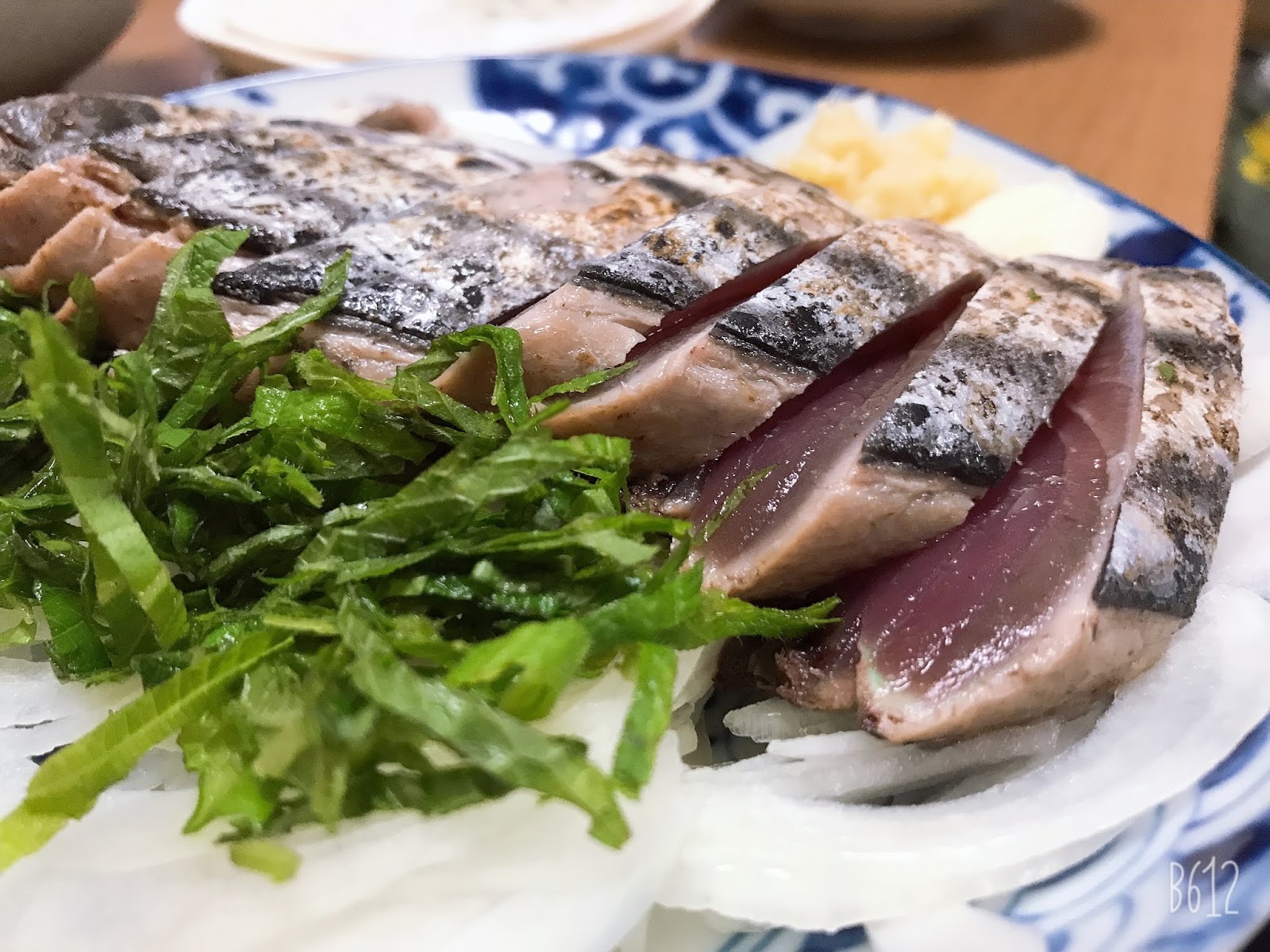 娘から 2019年8月19日 最終更新日時 : 2019年8月19日 hiroshee 漁師のまかない料理から始まったという説がある「鰹のタタキ」大昔に食中毒防止から鰹の刺身が禁じられていたために表面のみを焼いて焼き魚と称して食べられていたらしい。そんな美味しい「鰹のタタキ」を娘から頂戴して酒の肴として食した。すったショウガと刻んだニンニク、畑で採れた大葉とともに…すごく旨かった。