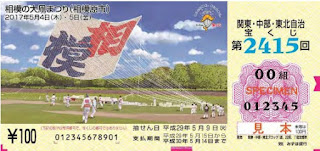 幸運を手にするのは? 2017年5月11日 最終更新日時 : 2017年5月11日 hiroshee 先月4月19日から5月2日まで北海道・東北・関東(東京都を除く)中部各地方及び三重県で販売されていた「宝くじ」。その抽選が一昨日おこなわれた。1等1000万円!買い求めた方しか当たらないので、是非確認を!