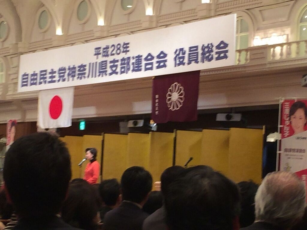 役員総会 2016年3月26日 最終更新日時 : 2016年3月26日 hiroshee 平成28年「自由民主党神奈川県支部連合 役員総会」がロイヤルホールヨコハマで開催され出席。国会・県会・市会の各議員とその後援者が集い、盛大に挙行された。まず初めに、県連会長である小此木衆議院議員の挨拶から始まり、県連の竹内幹事長が党情報告と新年度の活動報告、会計報告等々を行った。その後、今夏に執行される参議院議員選挙に立候補予定である三原じゅん子参議院議員が決意表明をおこなった。ちなみに、神奈川県では唯一の自由民主党公認候補である。