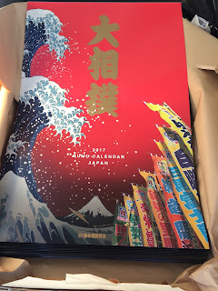 来年のカレンダー 2016年12月4日 最終更新日時 : 2016年12月4日 hiroshee 例年の渋い表紙から一転して来年の大相撲カレンダーは目を惹くデザインである。残すところ今年もひと月あまりである。先日、来年の大相撲カレンダーが送られてきた。日本を代表する和の巨匠である葛飾北斎、その北斎の代表作ともいえる冨岳三十六景、その中の神奈川沖浪裏がモチーフとなっているようだ・・・・・なぜモチーフ?よくよく見ると、大相撲の“大”の左隣・・・浪が一つ多い!間違いなのか?わざと付け加えたのか?デザインを施した方に聞かないとわからないが、気付いてしまったのは自分だけであろうか?