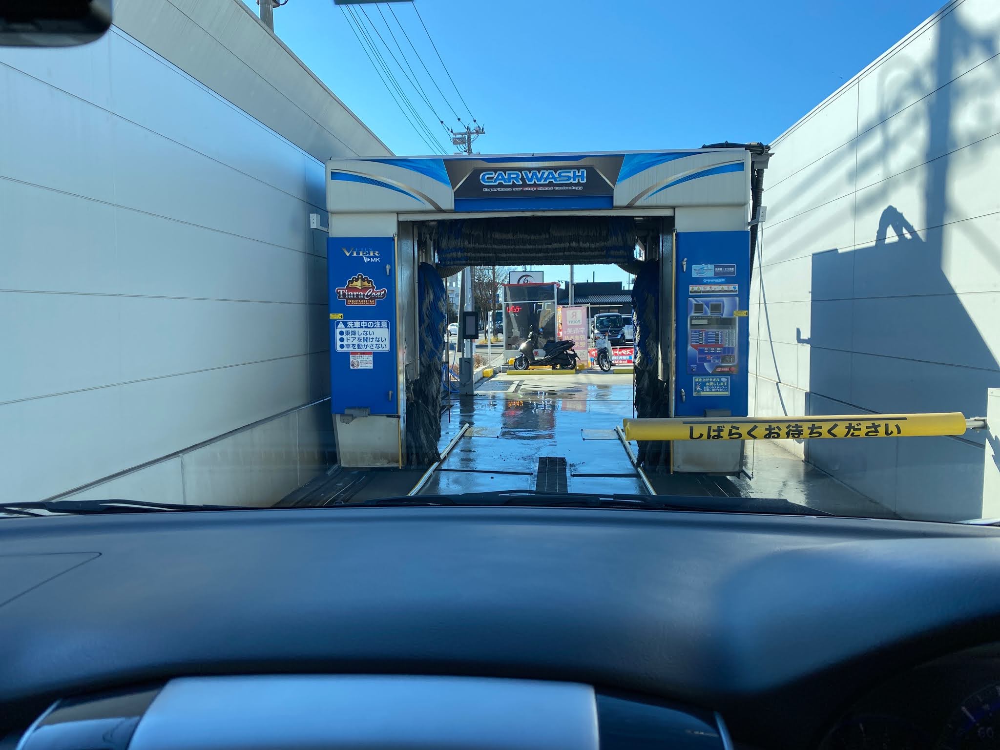 一度出直し、最初の店前を通ったら洗車機が動いているではないか!