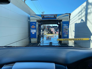 ラッキーと思いきや、洗車機前が閉鎖されているではないか!
