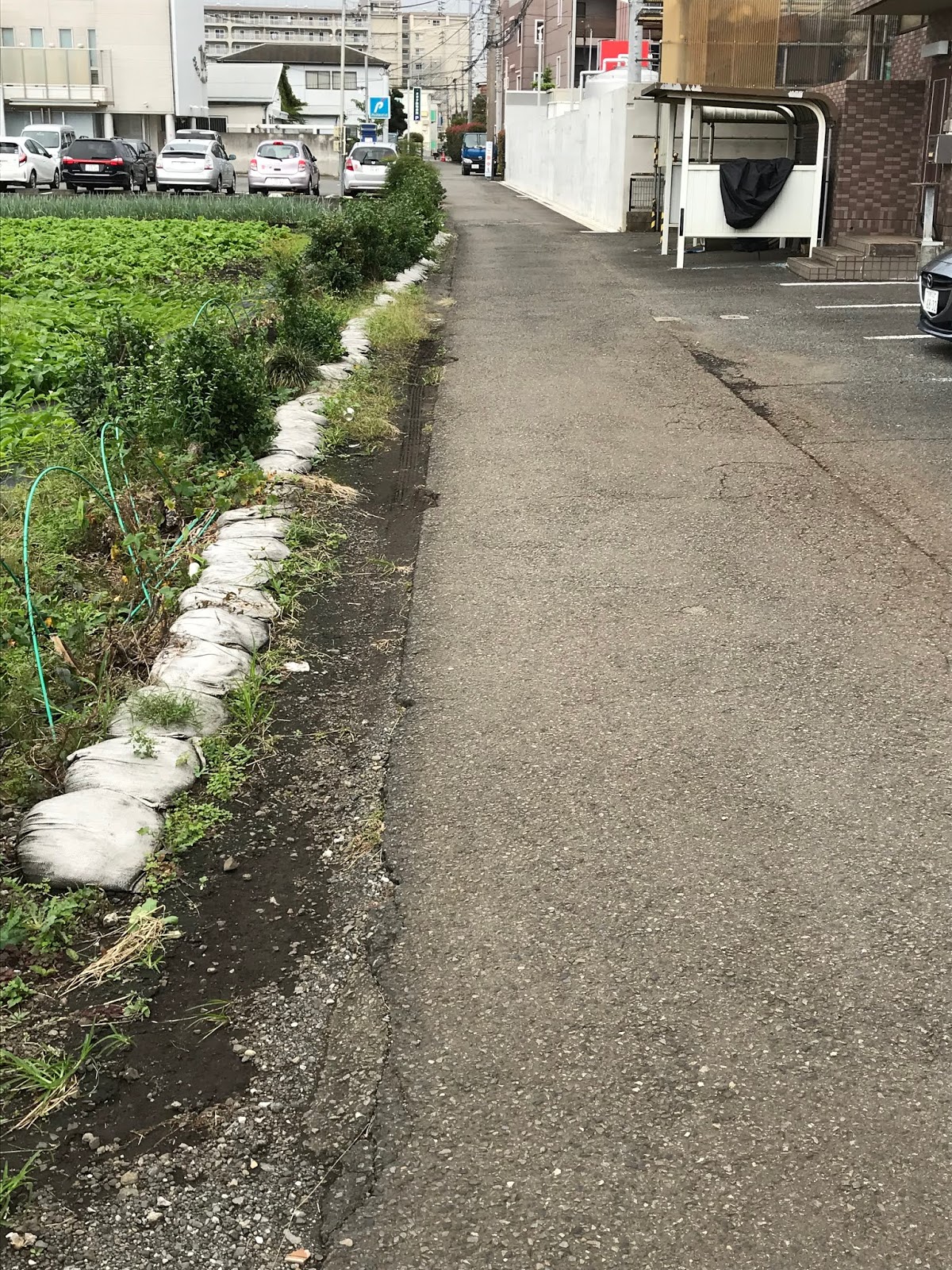 耕作被害 2019年10月20日 最終更新日時 : 2019年10月20日 hiroshee 先般の台風の時、畑一面湖になってしまった!何とかならないか?ある農業従事者から相談を受けた。公道に排水整備がなされていないので、三方向の公道より低い位置の畑に水が流れ込み、とんでもない状態になってしまったとの事である。少々の雨ならば、畑に浸み込んでいくから然程問題がないが、先般の19号のような事が再発すると…と、相談者は頭を抱えていた。ちなみに、行政が置いて行った僅かな数の土嚢では回避できなかったそうである。