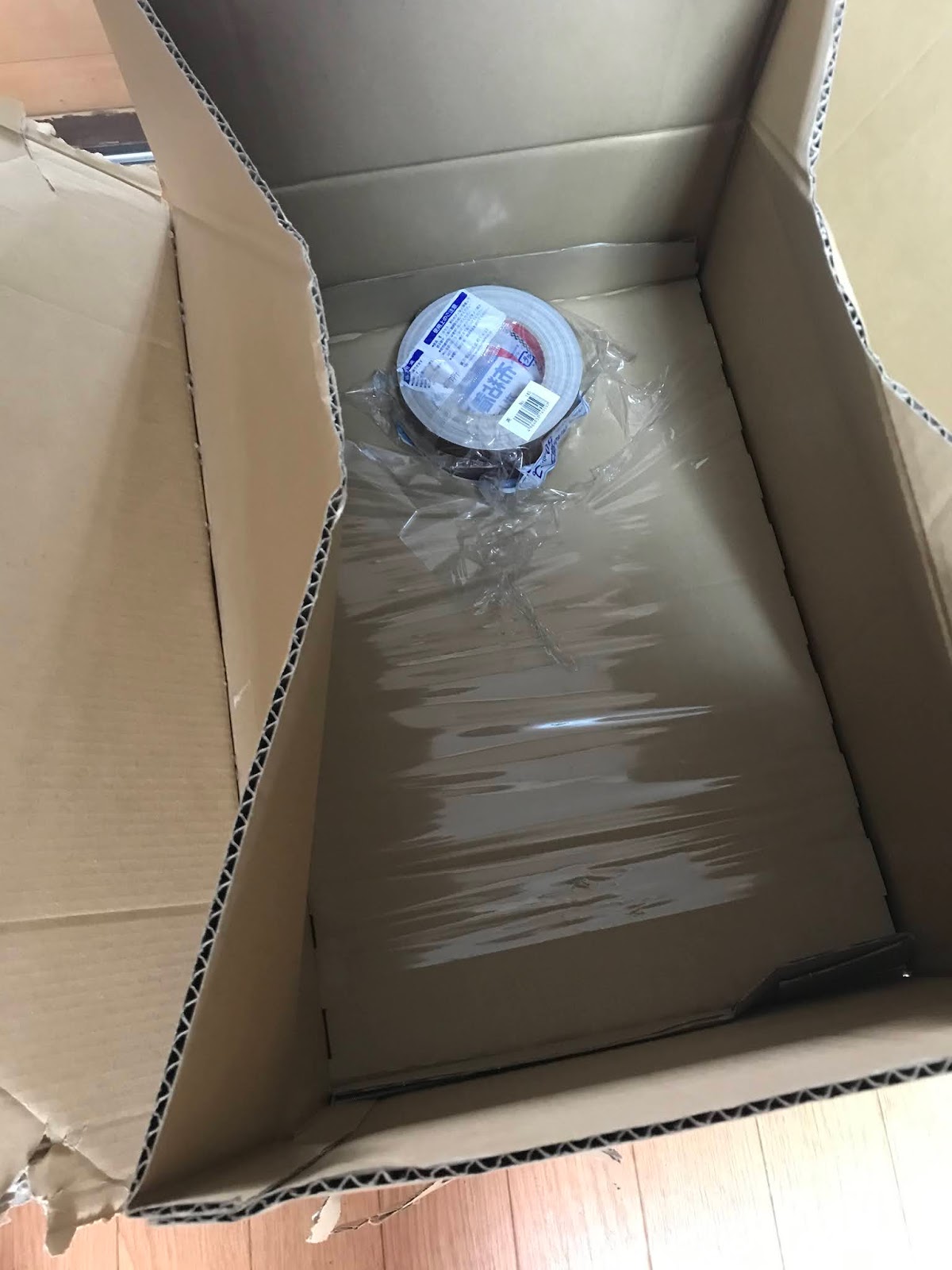 え! 2020年7月4日 最終更新日時 : 2020年7月4日 hiroshee 昨日、ミカン箱くらいの大きさの段ボール箱が届いた。中身は何だろう?やけに軽い…何かネットで注文したかな?この箱に似合う大きさの商品を注文した覚えがないのだが…箱を開封してビックリ!なんと、ガムテープが1つ。先日、どうしても茶色のガムテープが必要となりamazonで注文したものがポツンと。単価457円、送料無料との事だったので、当然小さな包みで送られてくると信じていたので「なんじゃこりゃ~」大型バスにポツンと一人だけ乗車しているような光景であった。