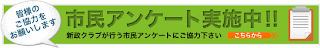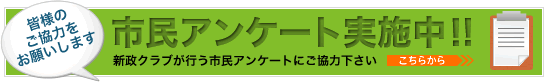 皆様方の声(率直なお考え)をお聞かせいただき、議会改革や議会活動等に反映していきたいとの意味合いから我が会派「新政クラブ」では、現在、相模原市民の皆様方を対象とした市民アンケート(相模原市議会に関する住民意識調査)を実施しています。