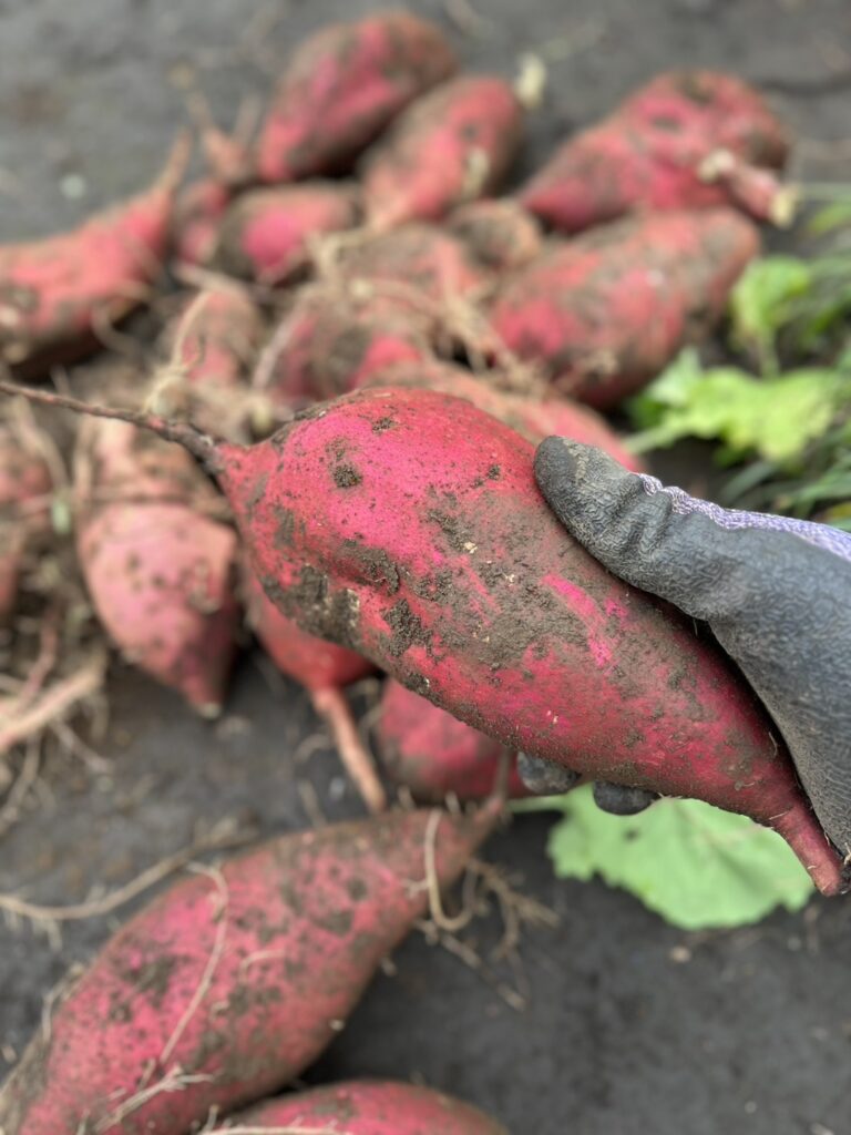 さつまいも 2025年11月1日 最終更新日時 : 2025年11月2日 furuuchi 本日、雨上がりの畑作業中(にんにく植え付け)畑隣のTさんから「さつまいも(安納芋)」をいただいた。自分たちで育てているものより、はるかにでかい!ゆかいな仲間たち一同異口同音に、何が違うのか?来年の課題の一つになりそうだ…