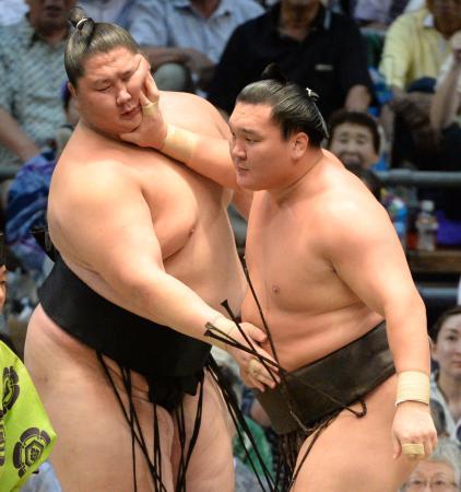 昨日の大相撲での一コマである、全勝の横綱白鵬に挑んだ小結逸ノ城であったが、撃沈・・・