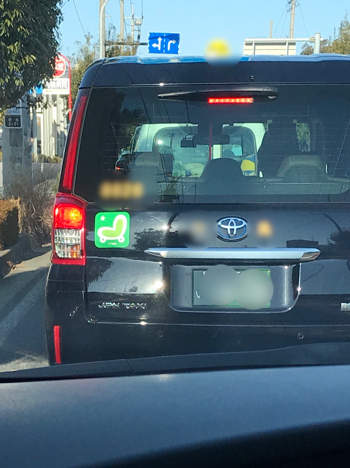 現在、タクシーには色々なステッカーが貼られている。