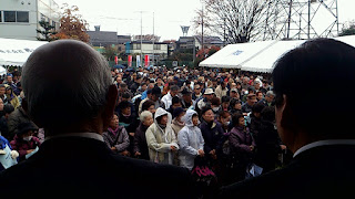 各陣営とも雨の中の出陣式となったため、バタバタとした中での第一声であったろうと思う。