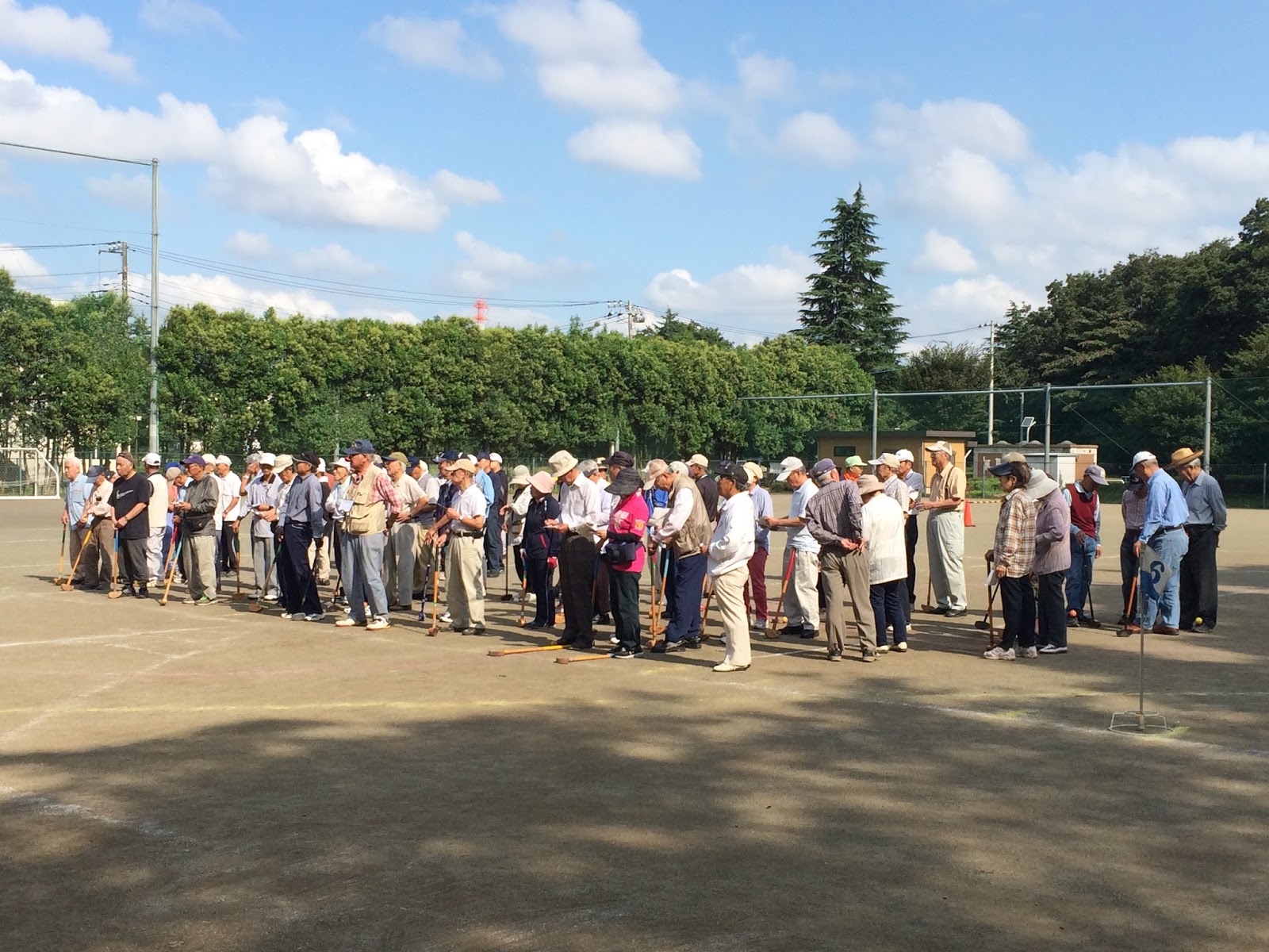スポーツの秋が始まった。 2015年9月15日 最終更新日時 : 2015年9月15日 hiroshee 昨年から大野中地区の老人会連合会で始まった「グランドゴルフ」その第2回目の大会が本日開催され、開会式に出席してきた。現在、中地区の老人会連合会では、このグランドゴルフのほかにゲートボールやペタンクといったスポーツを楽しんでいて、本日開催のグランドゴルフは赤丸急上昇で人気があるとの事。一試合8ホールで24打がパープレー。ホールインワンやバーディーだと点数が引かれるというルールらしい。個人競技なので、ゲートボールのような揉め事もなく和気あいあいと楽しめるとの事である。