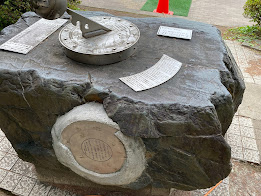 このタイムカプセルは、30周年・50周年・100周年にここをタガネであけ、取り出し、再び元のママに収納し、セメントでふさぐ。