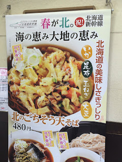 入口に掲げてあるおおきな看板にそそられ、「北のごちそう天そば」を食したが、これがまた旨かった!
