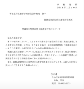 通常国会の召集が今月23日に予定されているが、高市政権内で早期の衆議院解散が検討されているようである。自民党幹部によると、政府高官から早期の衆院解散の検討状況について説明があり、可能性について「半々だ」と伝えられたという […]