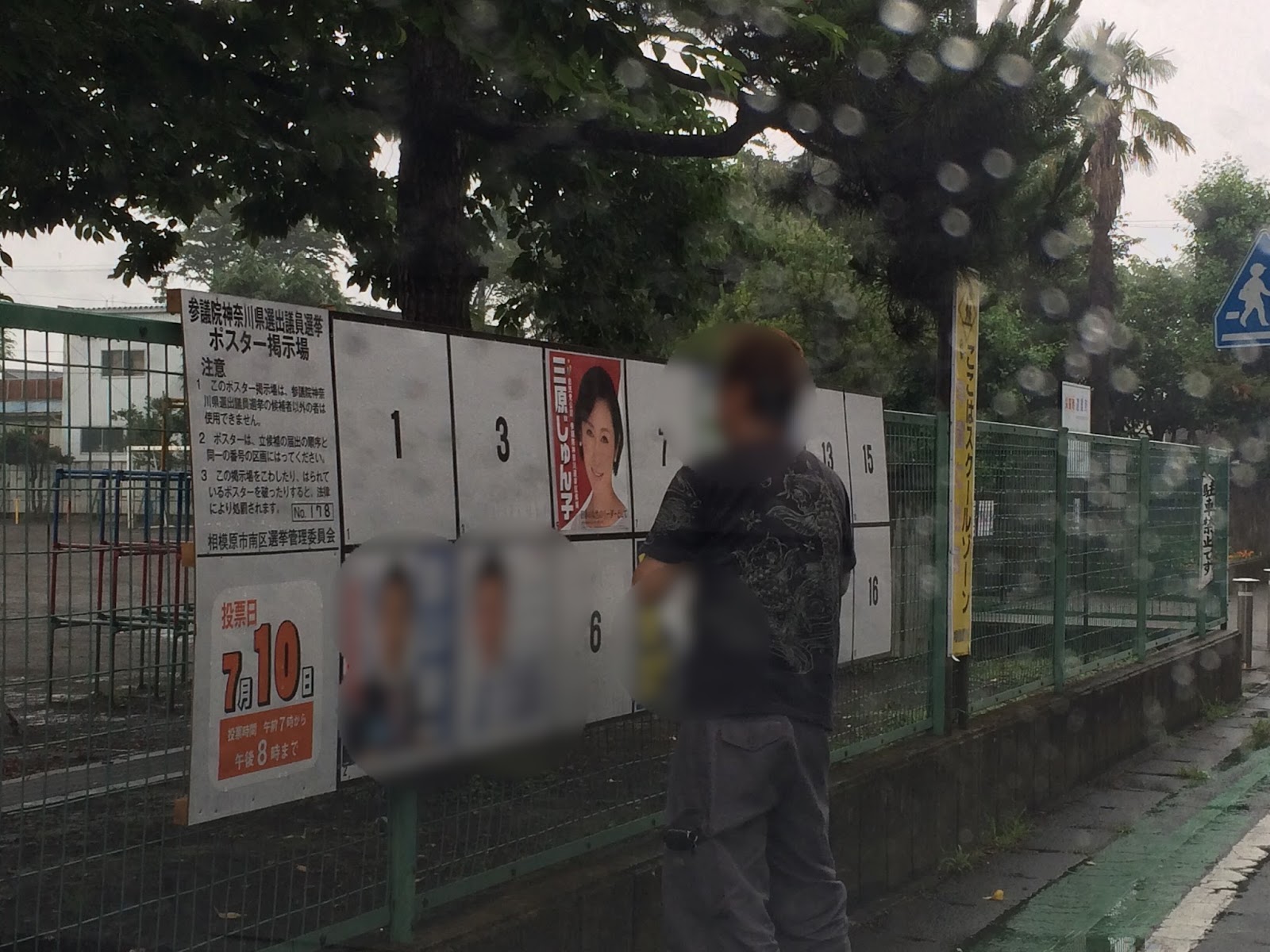 三原じゅん子候補 2016年6月22日 最終更新日時 : 2016年6月22日 hiroshee ジメジメした梅雨の中、第24回参議院議員選挙が公示された。午前8時30分から立候補の受付が始まり、我らが自民党神奈川県連唯一の公認候補である「三原じゅん子」候補のポスター掲示ナンバーも5番に決定!県連からの連絡を受け、各自受け持った各ポスター掲示板に向け一斉に走った。小雨が降る中、雑巾で雨粒を拭い素早いながらも慎重に1枚1枚丁寧に掲示してきた。7月10日が投開票日なので、本日6月22日より来月の9日まで選挙戦が展開される。