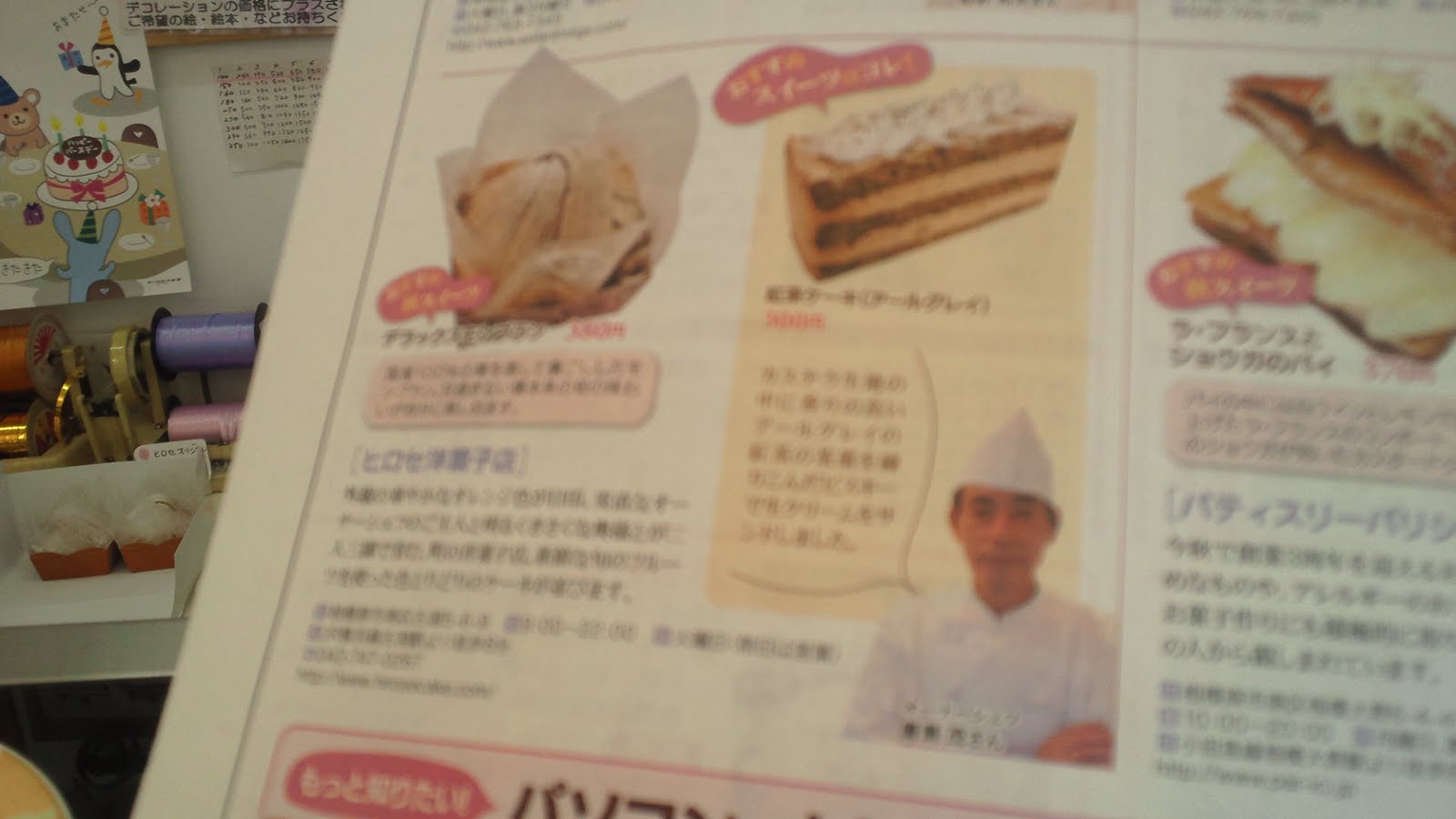 また先般、地域情報誌(ぱど10/1号)に掲載された「ヒロセ洋菓子店」さんに寄り、デラックスモンブランと紅茶ケーキ(アールグレイ)を購入。