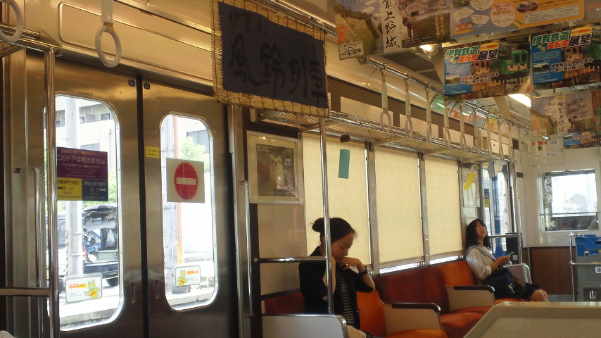 写真の説明ですが、上は「伊賀鉄道の、くノ一車両」で、下の写真は車内ですが、何と風鈴が・・・風情がありました。