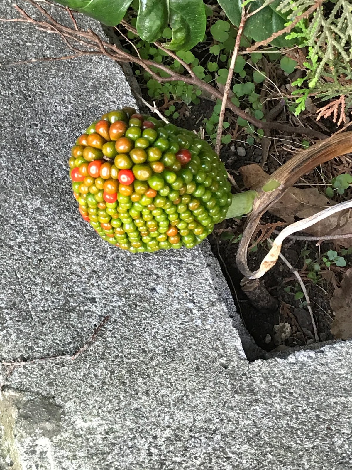 何の実 2018年11月11日 最終更新日時 : 2018年11月11日 hiroshee 本日は、日曜日という事で多くのイベントが開催された。早朝より古淵でおこなわれた「朝市」に顔を出し、続いて淵野辺公園で開催された市の「農業まつり」、隣接会場の「親子ふれあい広場」に伺った。午後からは、鹿島台子どもセンターで開催された「チャイルドームまつり」に来賓として招かれ行ってきたが、その道すがら「謎の実」を発見した。何だろう?色々と調べた結果、マムシグサの実ではないかと推察。今まで見たこともないツブツブ感。当然食べられないと思うが・・・どうだろう?