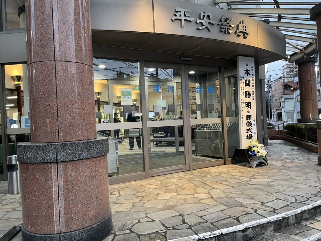 先日、呼び出し照喜から連絡が入り葬儀日程などの報告を受けていて、本日が通夜式であったため江東区森下の平安祭典へ伺い焼香させていただいた。