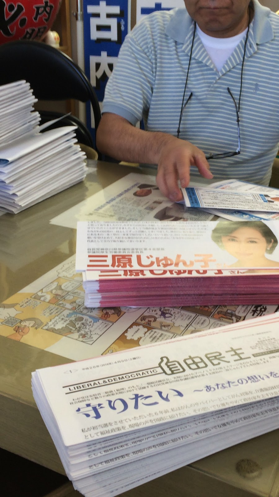 7日の土曜日に開催する後援会主催「新緑のつどい」で配布する資料の封筒づめをおこなった。