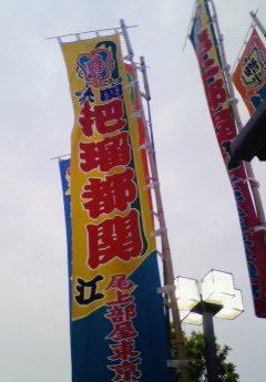 国技館前にたなびく「のぼり」、贔屓の力士に後援会や企業が贈るものです。