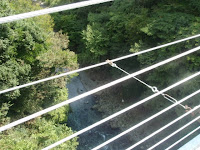 国道413号線(道志道)を、ひたすら走る・・・相模原市から山梨県に入り暫くすると、おばちゃんの店の横に吊り橋を発見!