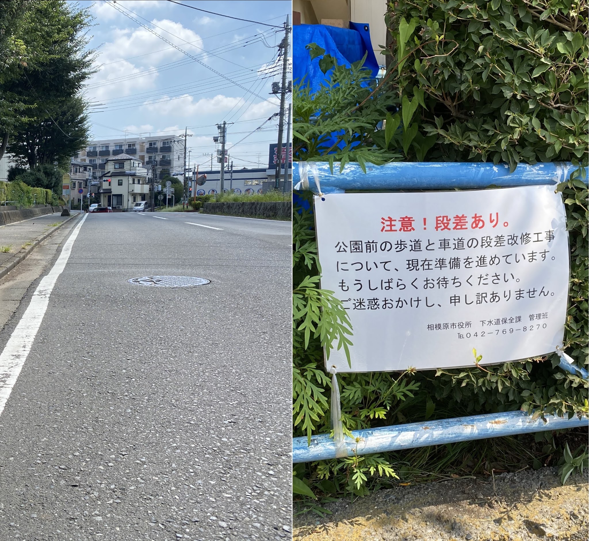 地域課題 2020年8月22日 最終更新日時 : 2020年8月22日 hiroshee 7月1日に地域の方から指摘された道路の件。 陥没の原因が下水管にある!とのことで、下水道保全課が対処することとなった。 改善するまでもう少し時間を要するとの事で、注意喚起のお知らせを掲示するよう指示し、昨日設置された。