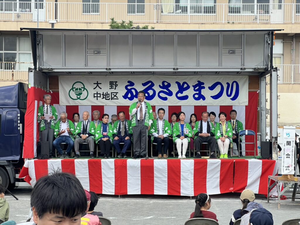 本日、第18回「大野中地区ふるさとまつり」が開催され、開会式において市議会議員代表としてご挨拶させていただいた。