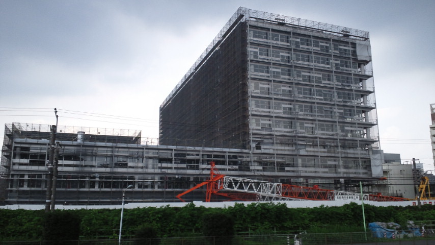平成24年3月23日竣工目指し建築中の「町田市庁舎」、躯体工事も順調に進み、しばらく見ていないうちに、窓枠(サッシ)が取り付けられていた。