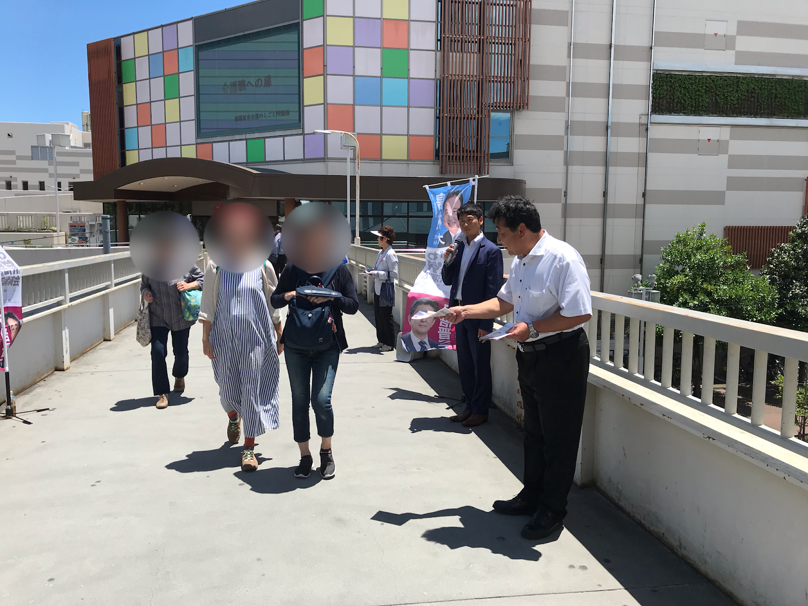 強い日差しの中 2019年6月16日 最終更新日時 : 2019年6月16日 hiroshee 参議院神奈川選挙区の島村大議員の知名度アップのため街頭活動をおこなった。本日は、日差しが非常に強かったため、ショッピングセンターを渡る通路も人出が少なく、少々期待外れの活動であった。神奈川県全域が活動エリアなので、本人も東奔西走で連日動き回っている。