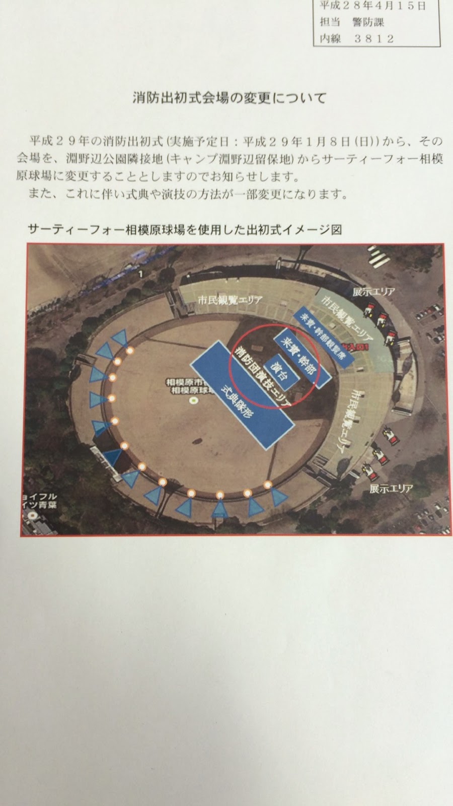 毎年1月におこなわれている消防出初式の会場が変更になるようである。