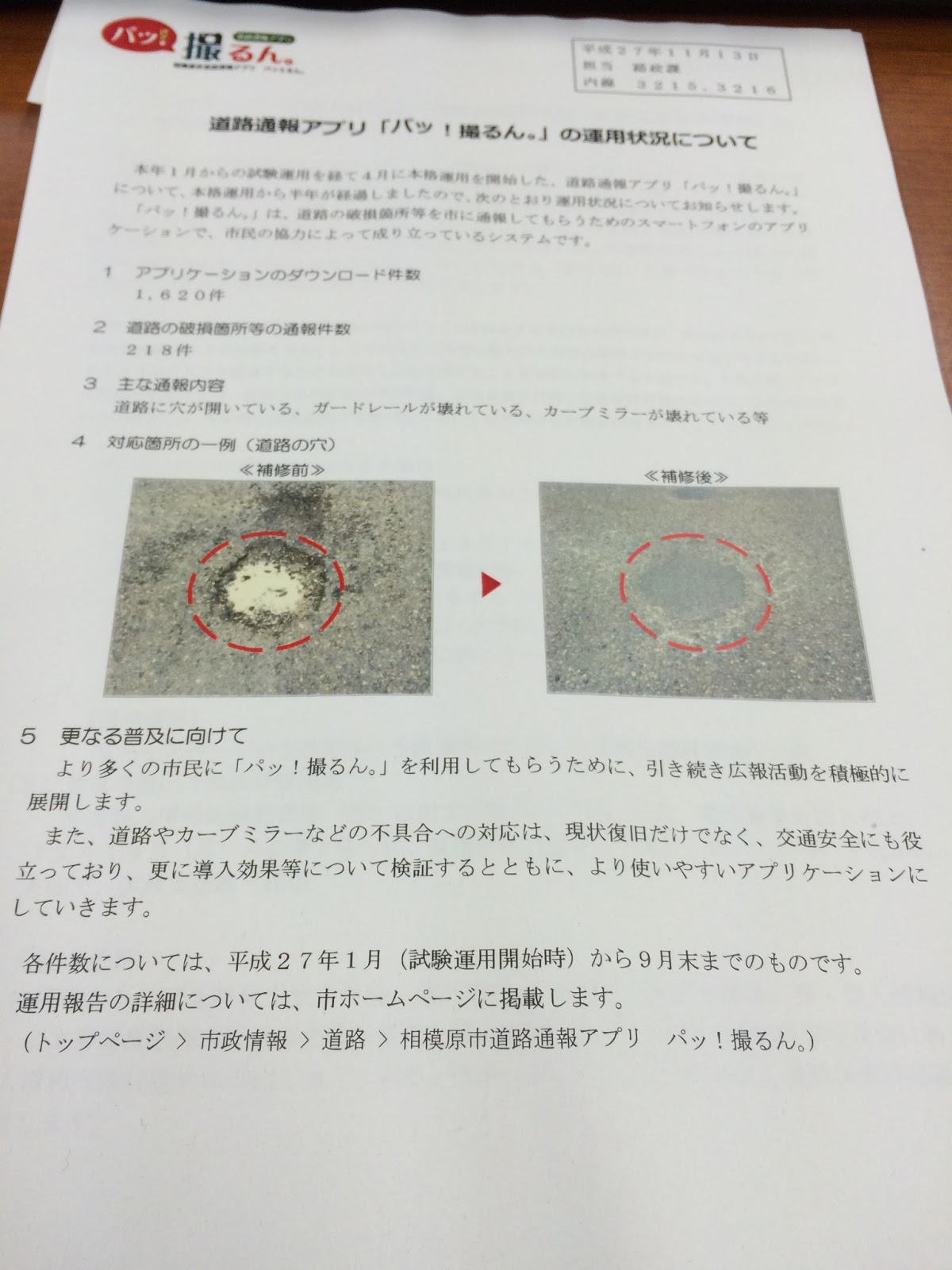 アプリのダウンロード数は1620件で、道路の破損箇所等の通報件数は218件あったとの事。