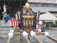 翌日曜日には、本神輿(写真右)がam11:00に宮出しされ、町内を練り歩きpm3:30に宮入り。