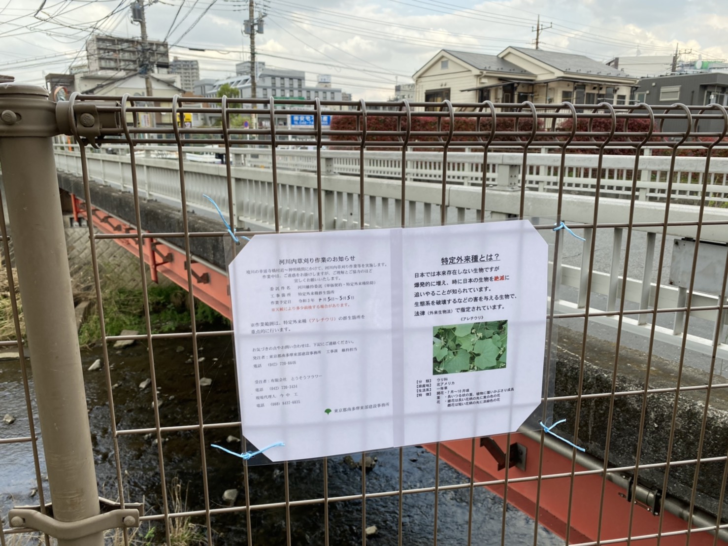 早速の対応! 2021年4月2日 最終更新日時 : 2021年4月2日 hiroshee 先般の一般質問において、特定外来種対策を項目の一つにあげた。 その中に北アメリカ原産の「アレチウリ」について、日本では本来存在しない生物で、爆発的に増え日本固有の生物を絶滅に追いやるような増え方をするため早々に対処してほしいと訴えた。 その声が届いたのであろう、来週月曜日から1か月ほどかけ境川において河川内の草刈りを行う事となった。 もう少し欲を言うならば、2度と生えてこないように根っこから引き抜いてほしいと思う。
