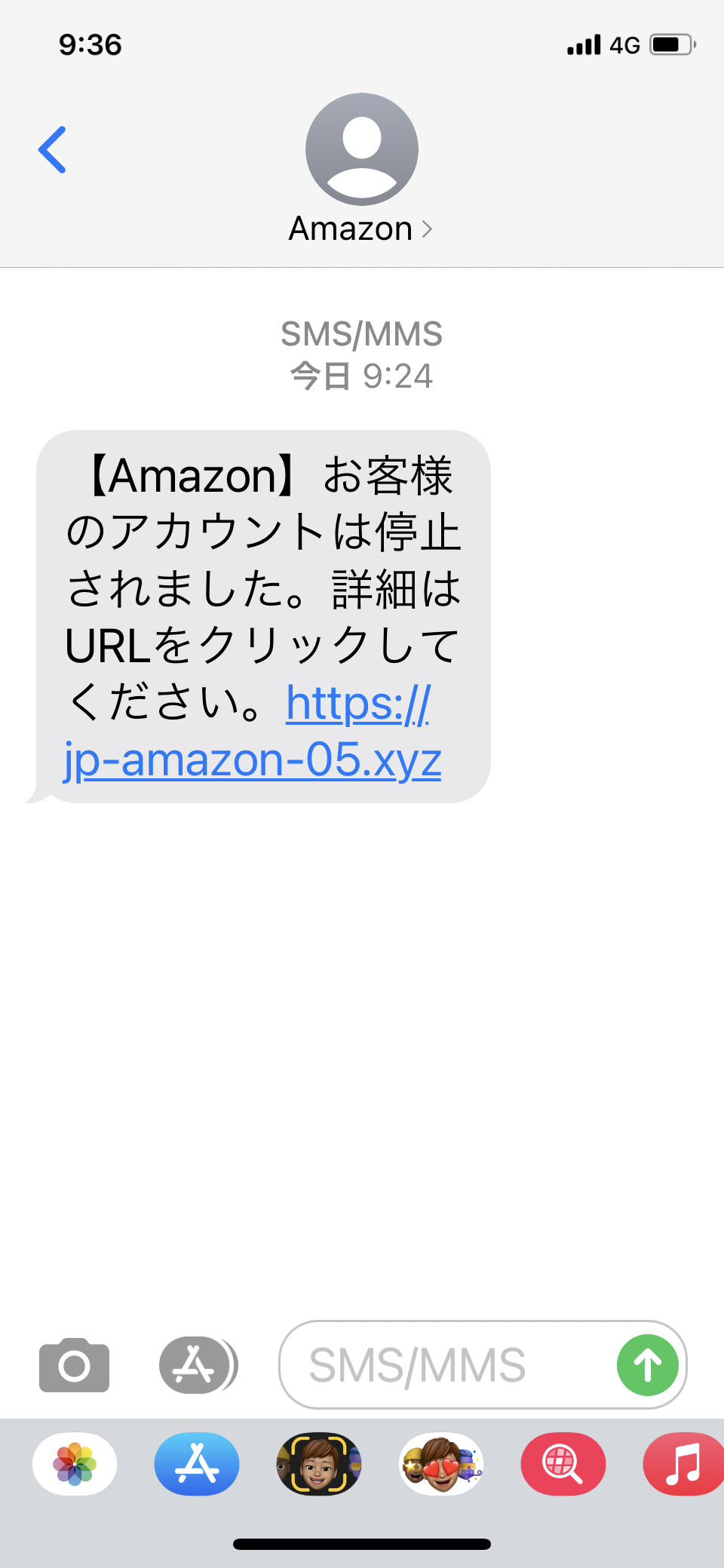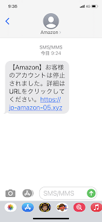 昨日の事! 2021年4月14日 最終更新日時 : 2021年4月14日 hiroshee またまた怪しいSNSが送られてきた。 日頃からAmazonを利用しているので、少々気にはなったがそのまま削除! Amazonからの注意喚起では… Amazon.co.jpでは、ご登録のアカウント情報(パスワード、クレジットカード情報など)の開示をお客様にお願いすることはありません。 SMSメッセージや電話で伝えられた連絡先(電話番号、URLなど)には返信しないで下さい。 との内容が発信されている。 ま、何が送られてきても動じなければ良いのである。