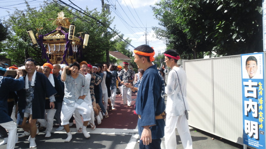 本神輿巡行 2011年9月11日 最終更新日時 : 2011年9月11日 hiroshee 本日は、年に一度の本神輿巡行である。 宮出し前に神輿前で記念撮影だ! (青柳 柏木支部長撮影) pm3:30?時計が無かったので正確な時間がわからないが、予定通りだとすれば、3:30頃である。 宮入だ!自分を含め、全員ヘロヘロでの帰還である。当然、明日の仕事の事を考えたら神輿は担げない。 怪我もなく事故もなく、最高の巡行であったと思う。 来年もガンバロー!!! (守屋 鵜野団支部長撮影)