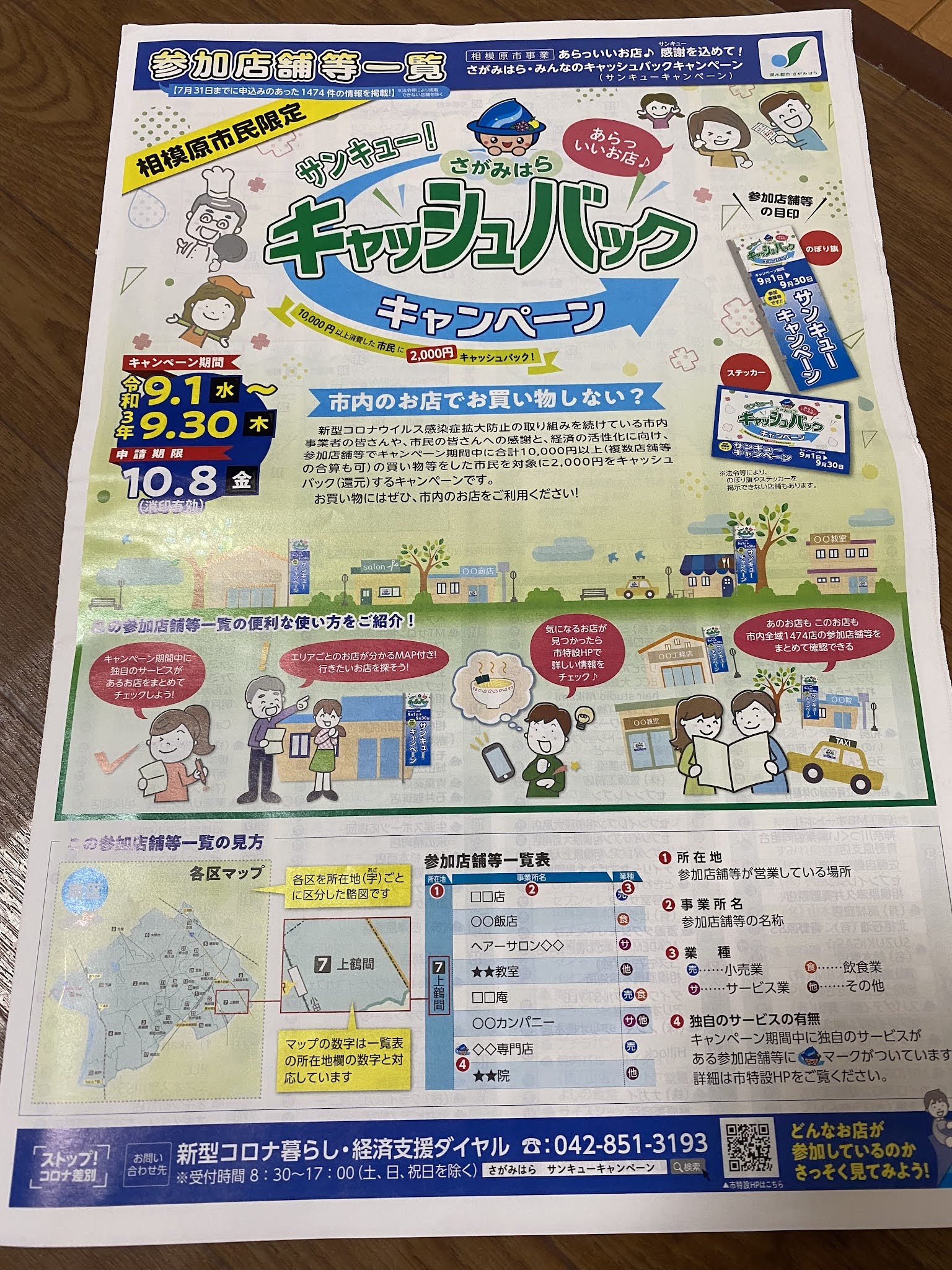 新型コロナウイルス感染症拡大防止対策を続けている市内事業者の皆さんや、市民の皆さんへの感謝と経済の活性化に向け、市内の参加店舗等で期間中に合計10000円以上(複数店舗の合算可)の購入などをした市民の皆さんを対象とした2000円キャッシュバックキャンペーンを実施することになりました。