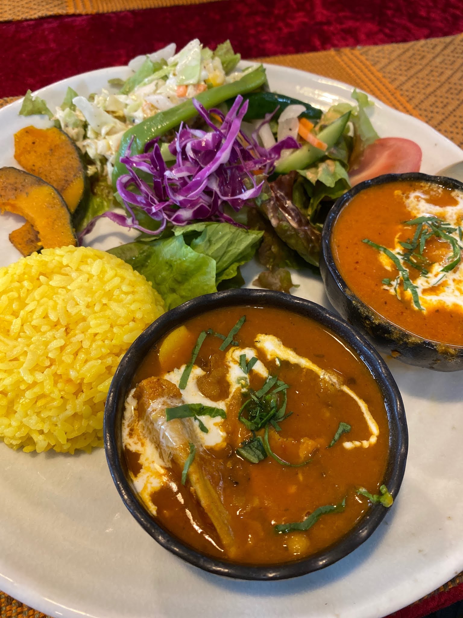 流ちょうな日本語を話す店主の作った本日のランチ、辛さ控えめだけどパンチがあるカレーに感激!