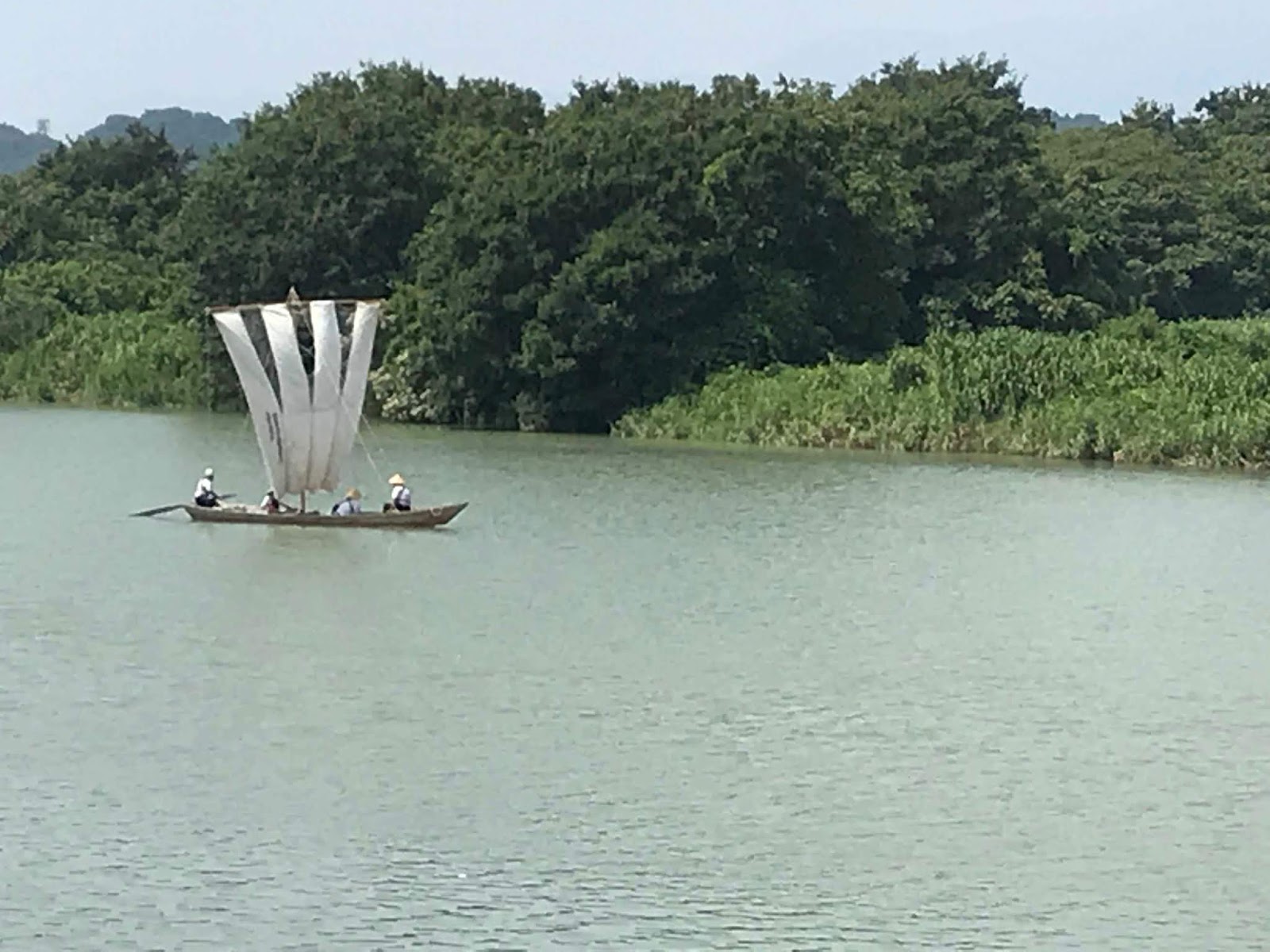 毎年恒例の・・・ 2018年8月6日 最終更新日時 : 2018年8月6日 hiroshee その昔、相模川には玉石や生活物資を運ぶ帆掛け船が運行していた。昭和58年に明治時代に使用されていた『帆』が見つかったことを契機として磯部民俗資料保存会の手で復元され、毎年8月の第一日曜日に実演会が開催されている。昨日、その催しが行われ相模川まで行ってきた。先般の台風の影響か?川が少々濁っていたが、悠々と帆掛け船が風を受け川下から上流へ上る姿が見れた。