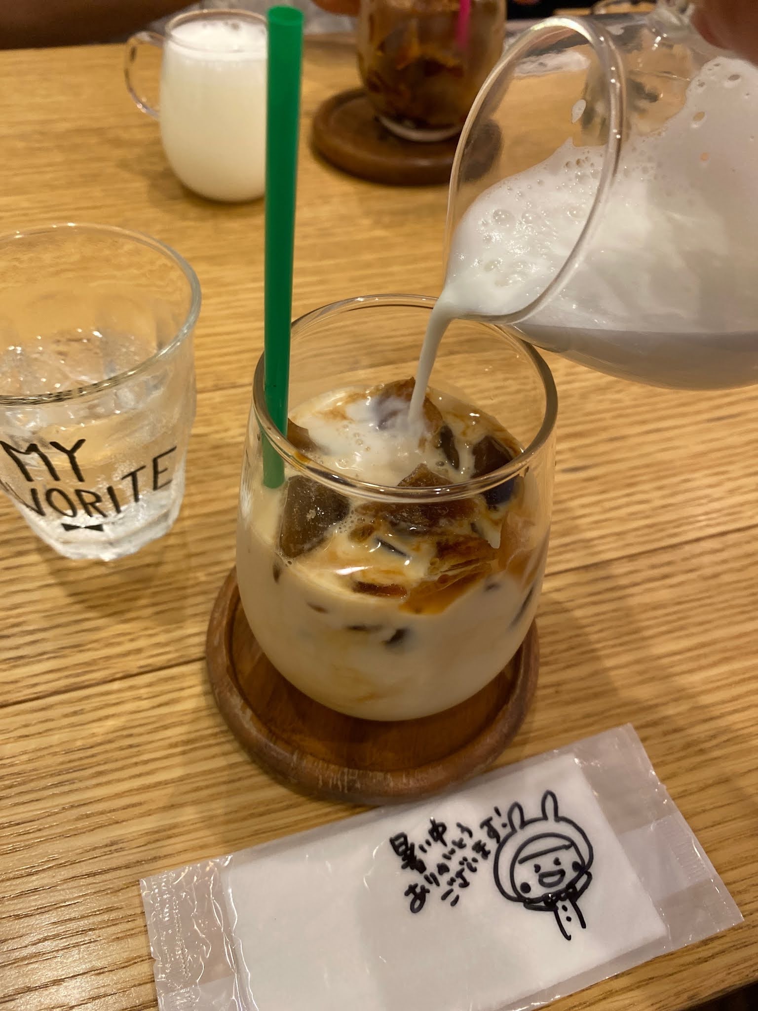 涼を求めて… 2021年7月27日 最終更新日時 : 2021年7月27日 hiroshee 炎天下の先日、相模大野にあるカフェツムリなるお店に入った。 昼食を済ませた後だったので、コーヒーでもって感じで入ってみた。 外装からして今どきの洒落た感じであったので、期待大! メニューをみると、氷コーヒーなるものがあったので注文した。 グラスの中には砕いた氷のコーヒーが入っていて、そこに温かいミルクを注ぎいただくとの事。 旨い! 初めての飲み物に感動するとともに、アルバイトの女性が描いたのであろう、おしぼりの一言に癒されたひと時であった。