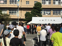 皆さん、お疲れさまでした! 2018年10月7日 最終更新日時 : 2018年10月7日 hiroshee 台風の影響で風が吹き荒れていた昨日とはうってかわって、快晴のうえ風もなく、日差しが非常に強くなった本日、大野中公民館主催の自治会対抗体育祭が開催され参加した。プログラム1番のアベック二人三脚にかみさんと出場し、我がチーム第1位に貢献!続いて、順位がない来賓枠でパン食い競争に出場!さまざまな競技がおこなわれ、結果的に全9チーム中、我が自治会は第3位となった!終了後、集会所で開催された打ち上げが盛り上がったのは当然だろう・・・