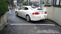 車両手前の白色縁石(今回設置)から車両先の白ポールまでが依頼者所有の“土地”である。